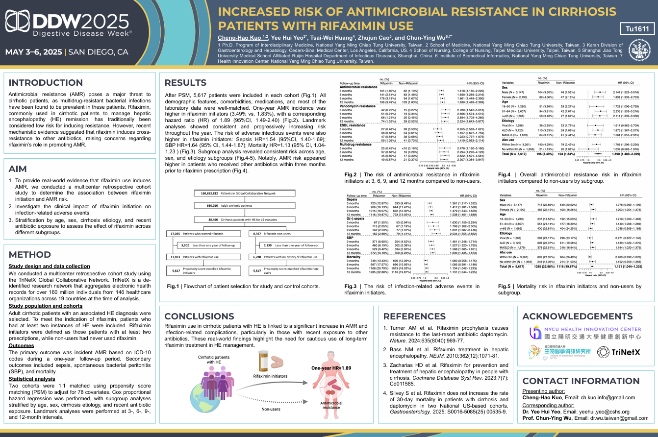 博士班郭正浩同學等人Increased risk of antimicrobial resistance in cirrhosis patients with rifaximin use.點我連結