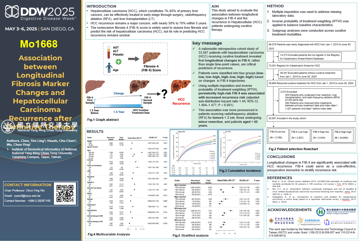 博士班陳彥伶同學等人Association between longitudinal fibrosis marker changes and hepatocellular carcinoma recurrence after definitivetherapy.點我連結